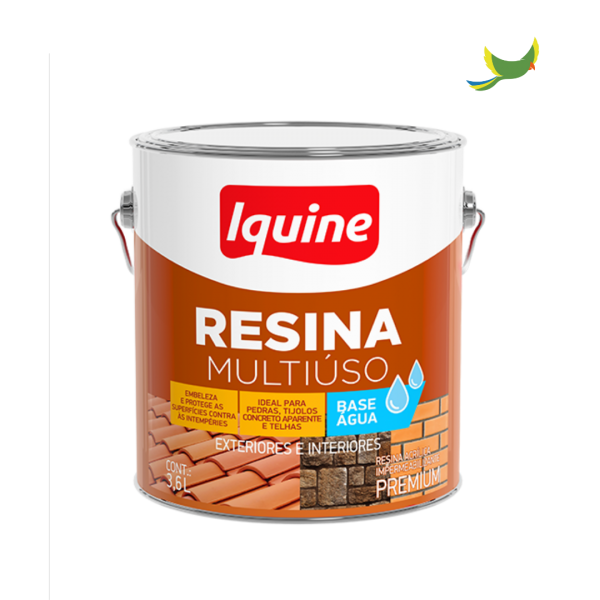 Resina Multiúso Base Água é uma resina à base de água de fácil aplicação que embeleza, facilita a limpeza e protege as superfícies externas e internas de pedras, tijolos à vista e concreto aparente. Apresenta ótimo rendimento, excelente acabamento e secagem rápida. Sua aparência transparente, depois da secagem completa, forma uma camada espessa, brilhante, impermeável e resistente às intempéries. Produto não é indicado para pisos e sua aplicação deve ser em superfícies porosas.